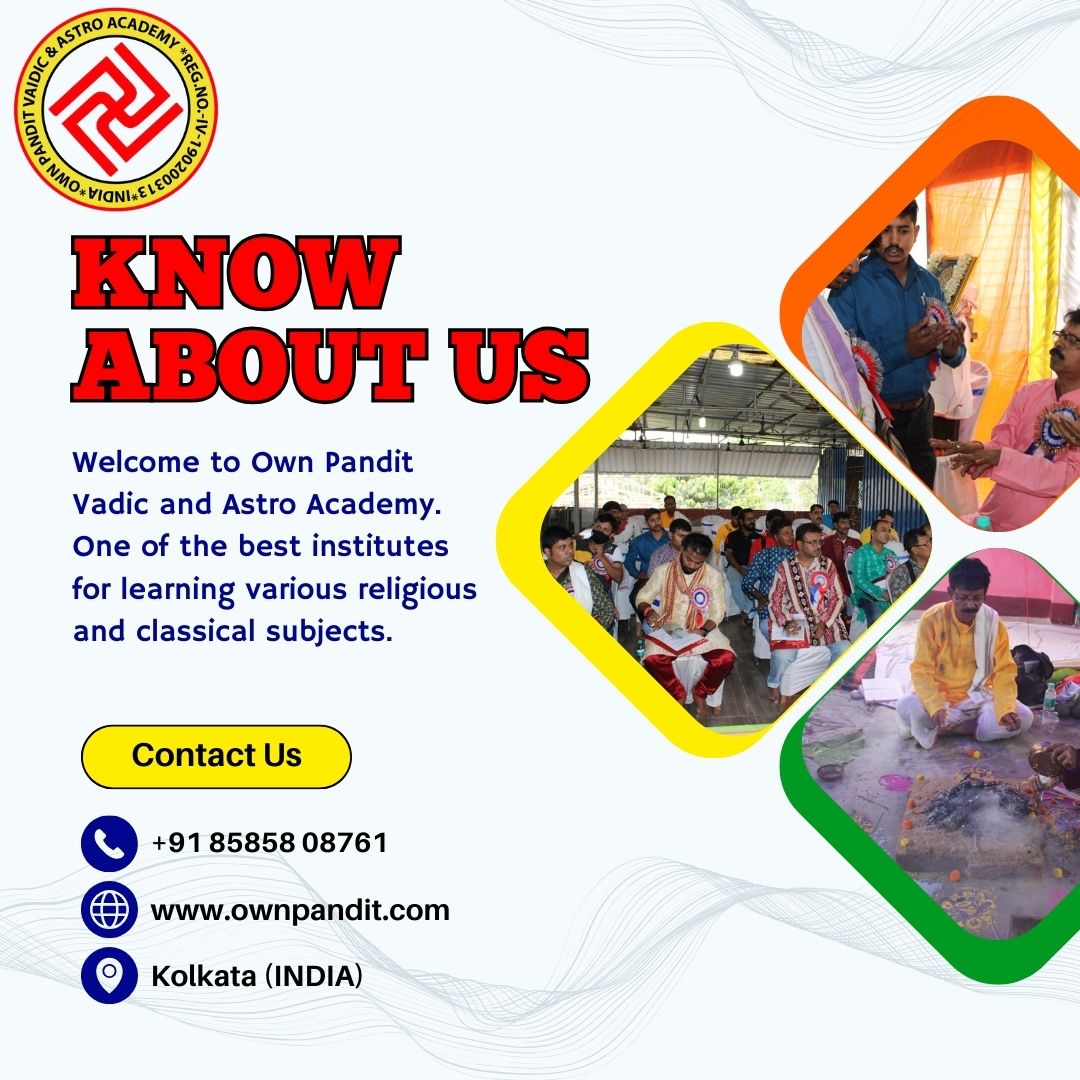 I welcome you from Own Pandit Vadic & Astro Academy. Thank you very much for showing your interest in us. It is a universal truth that having a true guru is absolutely necessary for a complete change in life. Our main goal is that you get an honest guru in your life. You may be a man or a woman but meaningful education is the most valuable gift you can gift to your present or future generations. We are engaged in a mission to provide high quality live classes and best educational services in Puja Path, Various Classical Readings, Astrology, Palmistry, Numerology, Tantra-Vidya, Tarot Card Reading, etc. So I request all classical lovers and astrology lovers to join our institute. And invite us to participate in this mission to rebuild our destiny and life smoothly by learning astrology.